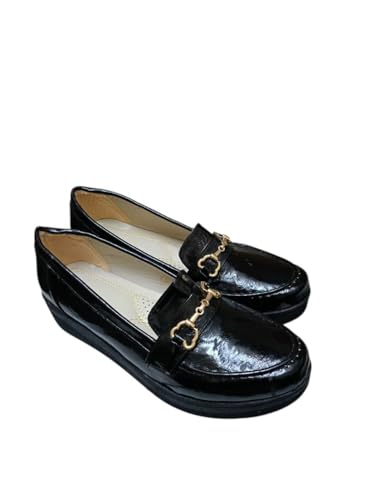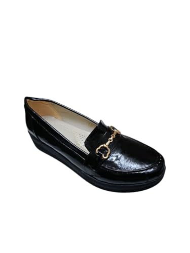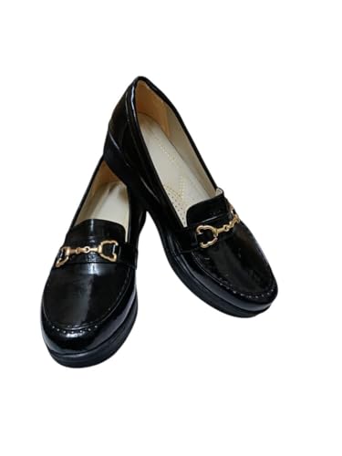Al Baraem - حذاء باليه مسطح بكعب عريض معدني 3 سم مع خياطة سرج مصنوعة يدويا بتصميم شرابة للنساء