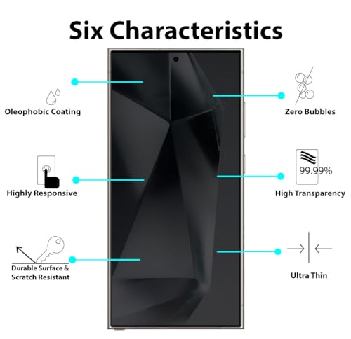 - [نصائح ودية] مصمم فقط لهاتف سامسونج جالاكسي S24 الترا 5G 6.8 انش. يرجى مشاهدة فيديو التركيب قبل وضع واقي الشاشة. وستختفي الخدوش الصغيرة أو الفقاعات، إن وجدت، تلقائيًا في غضون 24 ساعة