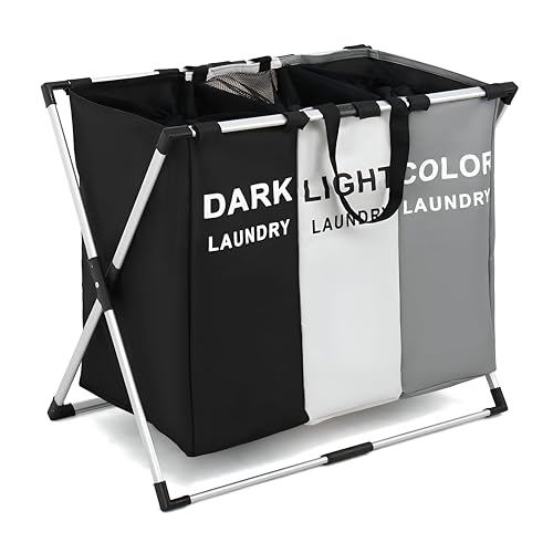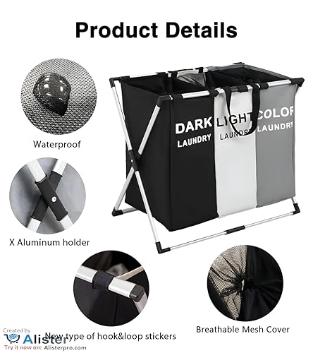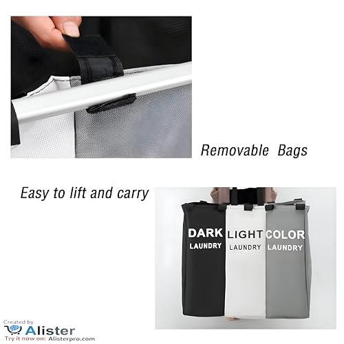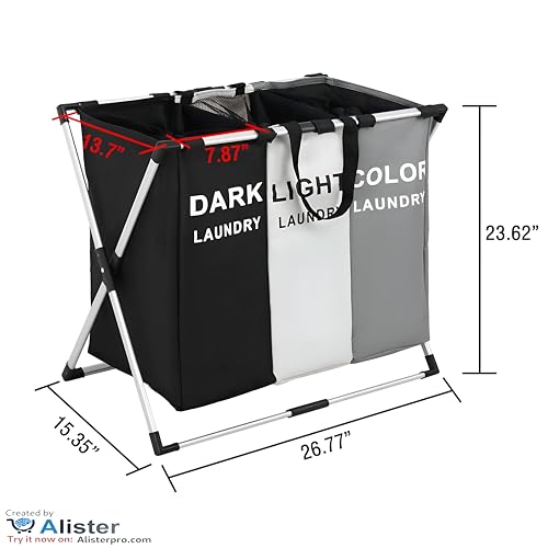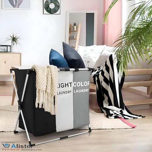 Generic - Al-Israa 3 Section Multipurpose Laundry Basket with Foldable Mesh Lid and Aluminum Frame for Laundry Sorter and Organization in Bathroom and Bedroom, Get It Now
