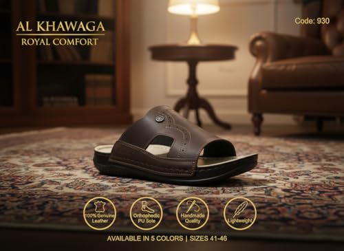 AL KHAWAGA - شبشب رجالي جلد طبيعي فاخر AL KHAWAGA موديل Royal | نعل بوليتان (PU) مريح جداً كود 930 | سليبر كلاسيك مريح للقدم والظهر مقاس 41-46 | جودة الخواجة الأصلية