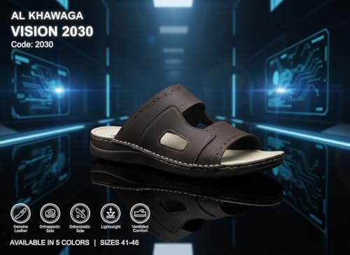 AL KHAWAGA - Men's Genuine Leather Slippers Vision 2030 | Polytan (PU) Sole Comfort Medical Code 2030 | Advanced Fashion Sleeper Sizes 41-46 | Original Khawaja Quality
