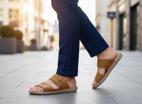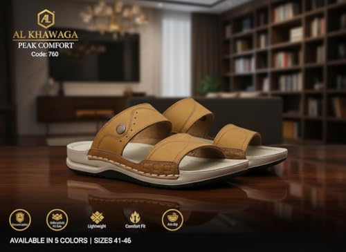 AL KHAWAGA - Peak Comfort Genuine Leather Men Slipper | Medical Comfort Polytan (PU) Sole Code 760 | Modern Lightweight Sleeper Sizes 41-46 | Original Khawaja Quality