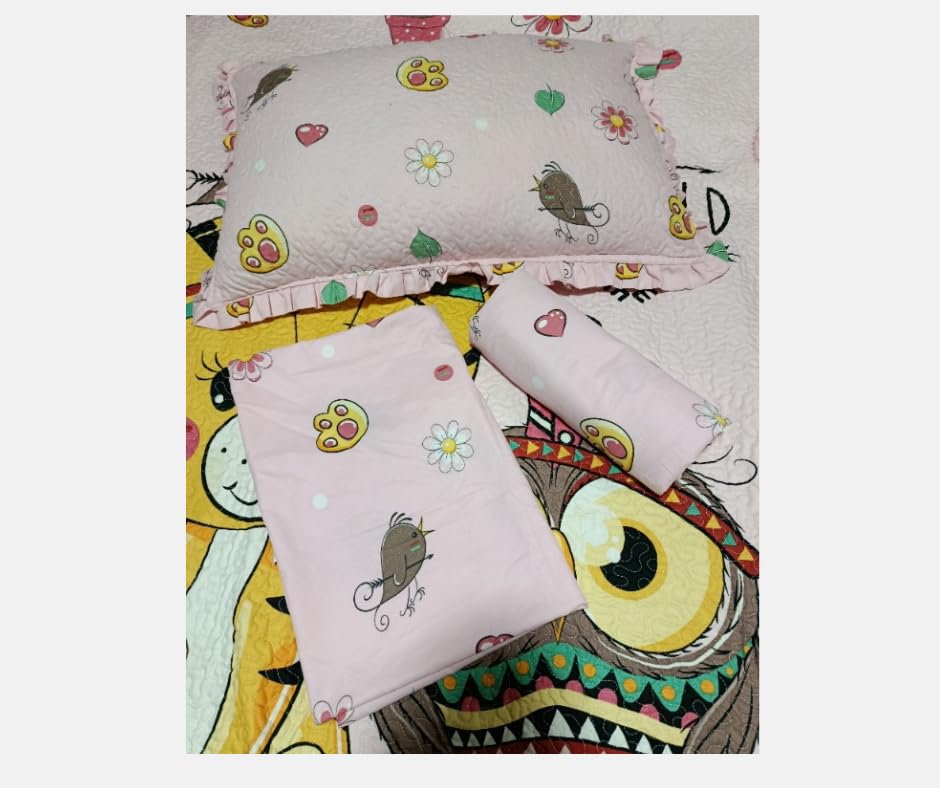- محتويات المجموعة: طقم لحاف أطفال صيفي 4 قطع يتضمن لحاف بوجهين مقاس 195×235 سم، ملاية مقاس 190×235 سم، كيس خدادية مقاس 50×75 سم، وكيس مخدة طويلة مقاس 45×120 سم