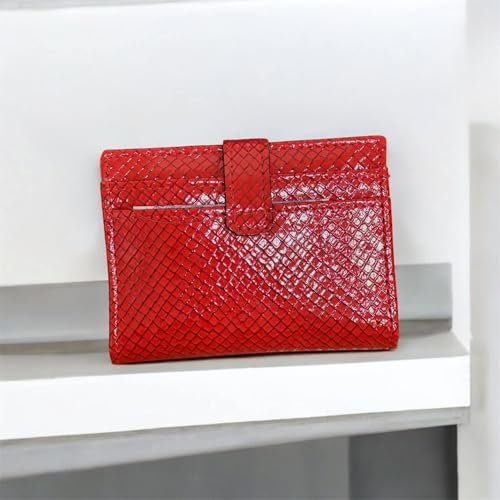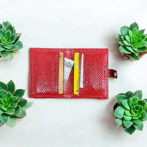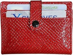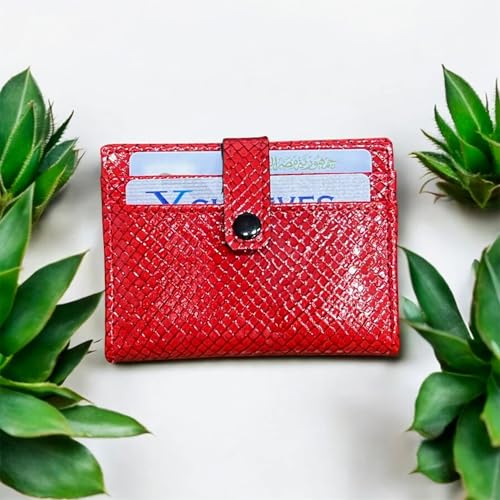 AL-MASA - محفظة جلدية حاصلة على براءة اختراع للنساء من الماسة، حامل بطاقات مبطن، حجم صغير، احمر، نمط ماسي، فتحات متعددة للبطاقات، جيب لبطاقة الهوية (احمر)