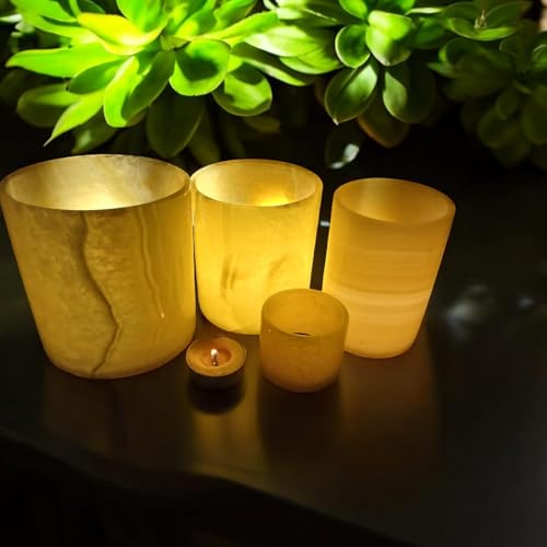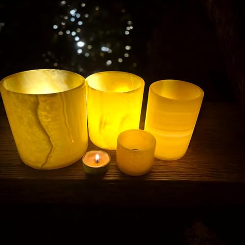 Generic - Alabaster Candle Holder, Strong Tealight Candle Holders, Clear Stone to Soothe Glow, Perfect for Ambient Lighting, Gifts, Warm Light and Enhance Your Décor Multiple Sizes. (Small)