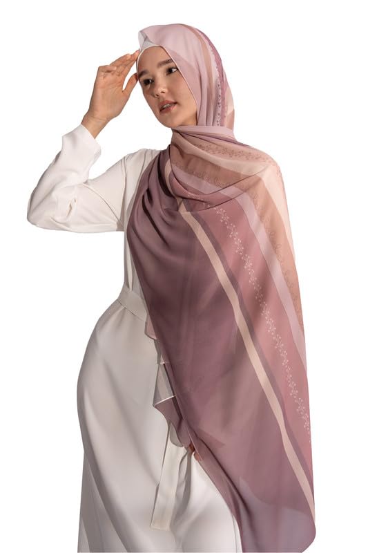 alamki - Women's Printed Chiffon Hijab Scarf – Lightweight Size 200 × 65 cm - Multicolor C014