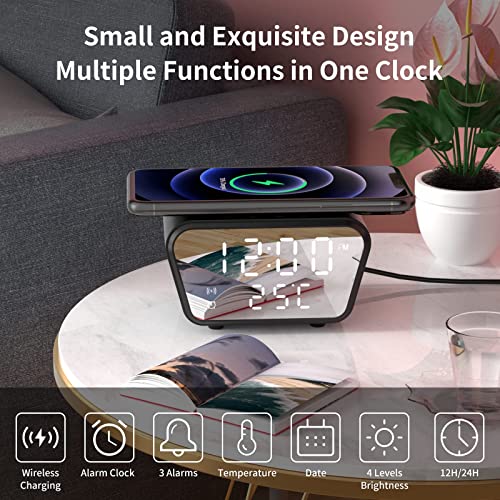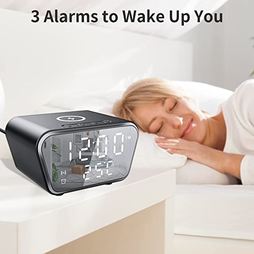 KASTWAVE - Alarm Clock with Wireless Charging, Digital Alarm Clocks Bedside Mains Powered, 3 Alarms, Adjustable Brightness LED Display with Time/Temperature, Fast Charger Compatible with All Qi-Enabled Phone