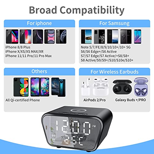 - ✔【Wireless Charging Function】 An alarm clock is also a wireless charger, super convenient, just put the phone on the alarm clock, you can get a fully charged phone in the morning. Support iPhone 12/12 Pro/12 Pro Max/12 Mini/SE 2/11/11 Pro/11 Pro Max/X/XS/XR/XS Max/8/8 Plus, Samsung Galaxy S21/S20/S20 +/S20 Ultra/S10/S10+/S10e/S9/S9+/S8/S8 Plus/S7/S7 Edge/S6 Edge+ and Note 10/10+/9/8/5 and other Qi-Certified smart phones and wireless earbuds.