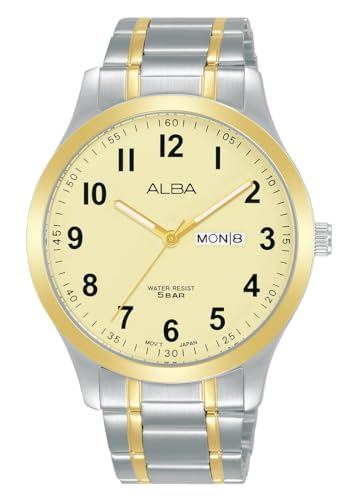 Alba - ساعة كوارتز أنالوج كلاسيكية ستاندرد من الفولاذ المقاوم للصدأ للرجال AJ6172X، ذهبي/ذهبي فاتح من ألبا