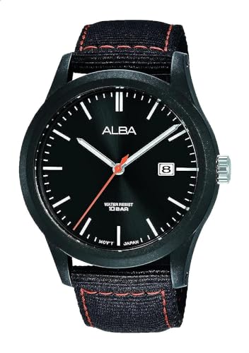 Alba - ساعة اكتيف انالوج بسوار اسود من النايلون وخياطة متباينة باللون الاحمر للرجال البا