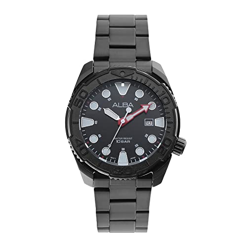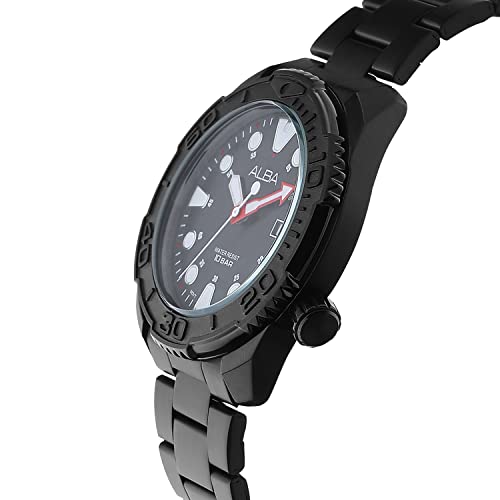 Alba - ساعة اكتيف للرجال من الفولاذ المقاوم للصدأ بمينا أسود من البا، AG8M13X