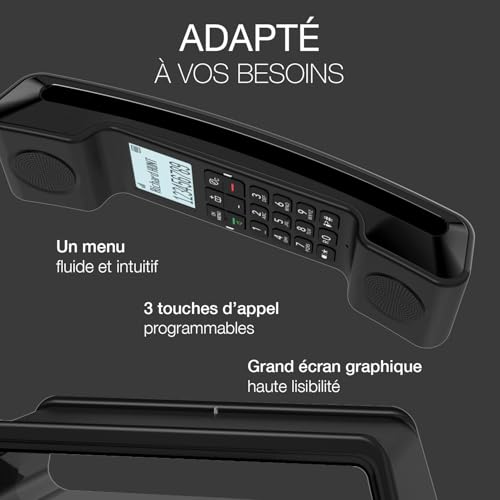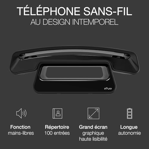 Alcatel - الكاتيل هاتف DECT لاسلكي بتصميم ايكونيك اسود من اي بيور، سهل الاستخدام، حجب المكالمات غير المرغوب فيها، بدون استخدام اليدين
