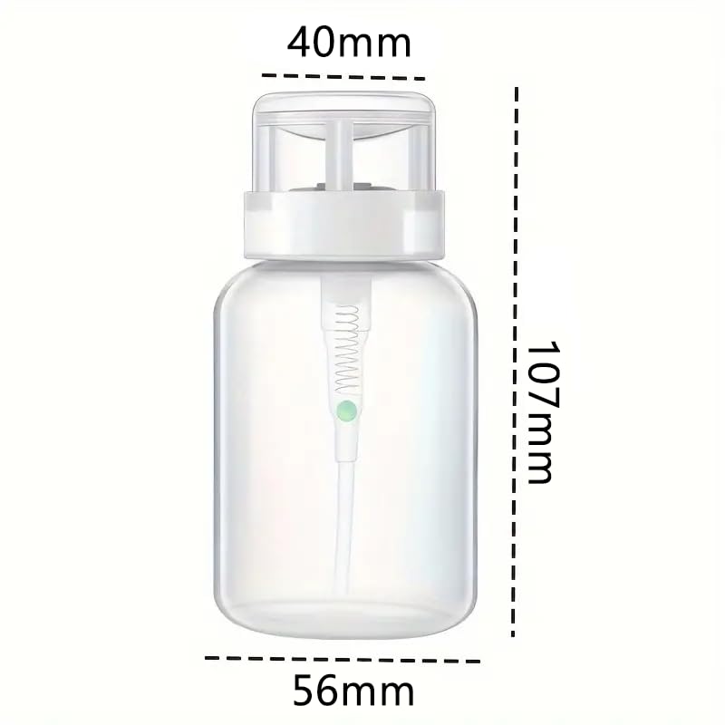 - Plastic push top pump bottles for versatile use with acetone, toner, removers, rubbing alcohol, and oils.