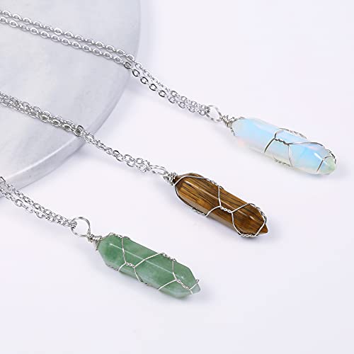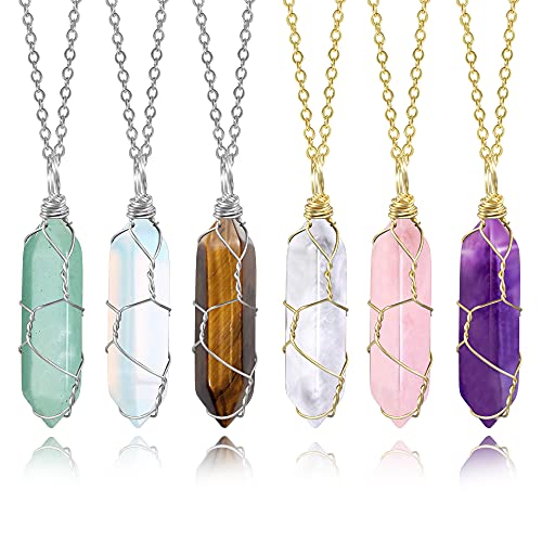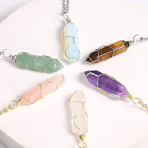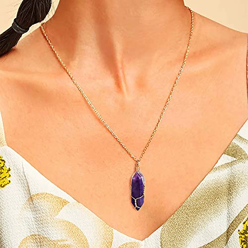 ALEXCRAFT - ALEXCRAFT Healing Crystal Necklaces for Women Natural Hexagonal Pointed Quartz Necklace Wire Wrapped Reiki Chakra Crystal Pendant Necklace, Stone,