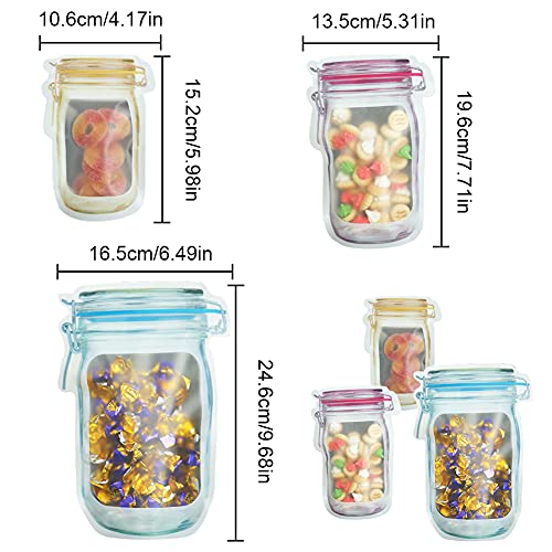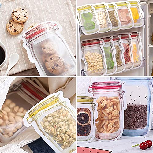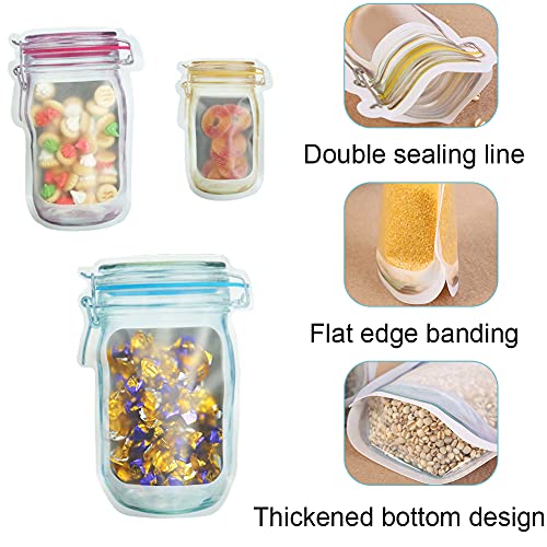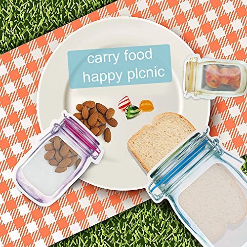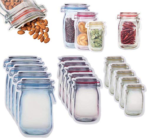 Generic - أكياس برطمانات بسوستة، محكمة الإغلاق وقابلة لإعادة الاستخدام على شكل زجاجات برطمانات ماسون، مانعة للتسرب لحفظ الوجبات الخفيفة، مانعة للتسرب لتنظيم المطبخ والتخييم والنزهات من ايه ال اتش اكس