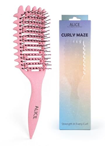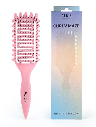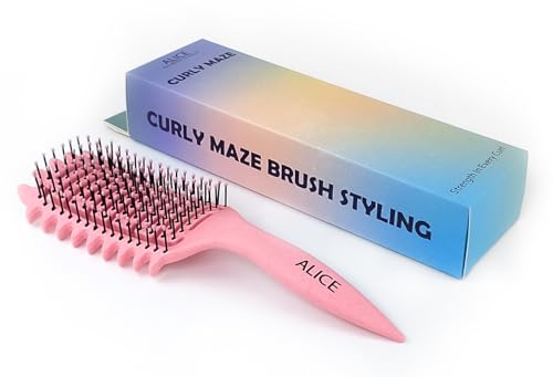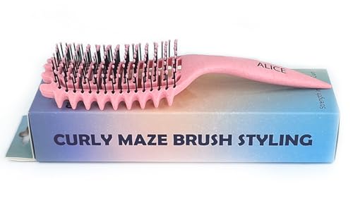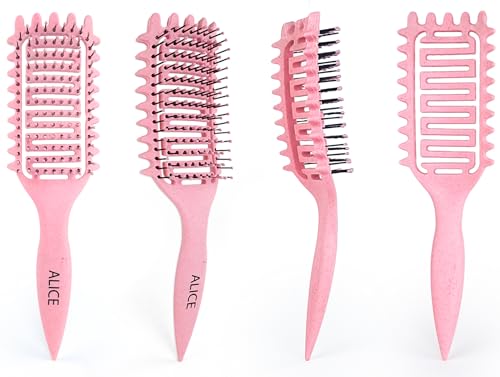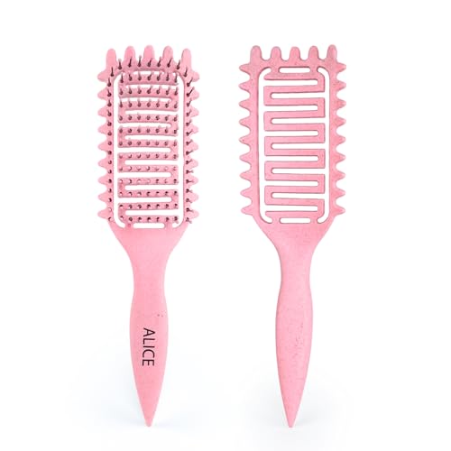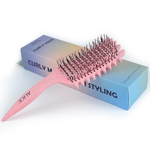 Generic - فرشاة تصفيف الشعر المجعد من اليس، فرشاة فك تشابك الشعر الرطب والجاف، الأداة الأساسية لتشكيل وتصفيف تجعيدات الشعر (وردي)