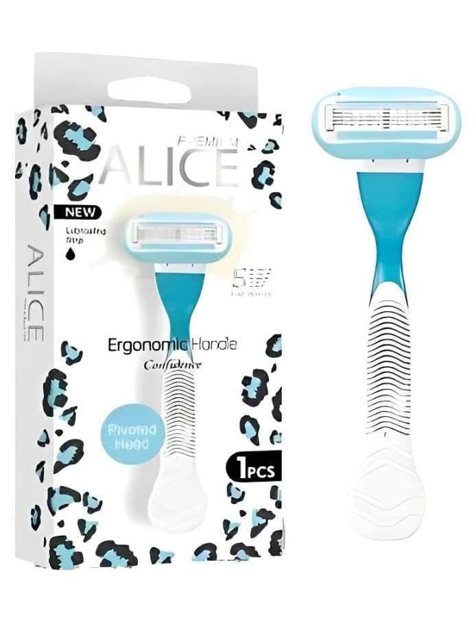 Generic - ماكينة حلاقة بريميوم اليس بمقبض مريح ورأس محوري وشريط ترطيب جديد تمنح الثقة للنساء من اليس، قطعة واحدة، لون أزرق Baby Blue وأبيض، للبشرة الجافة (5 شفرات، موديل AS-24)