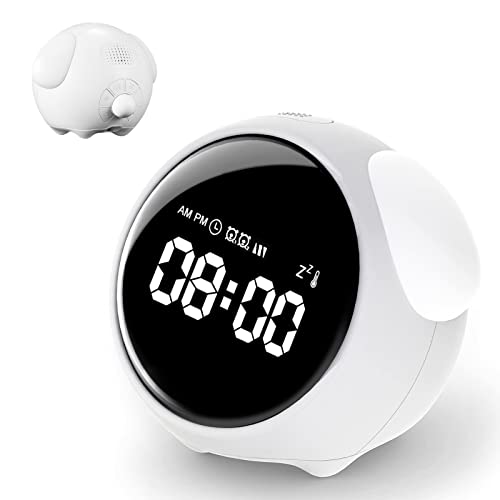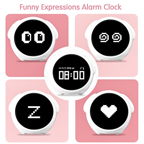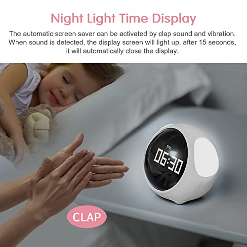 ALKNOT - Kids Alarm Clock, Clock for Bedroom, Cute Emoji Toddler Alarm Clock with Adjustable Brightness Night Light, Clap Voice-Activated, Snooze, Bedside Clock for Boys Girls Birthday Gifts