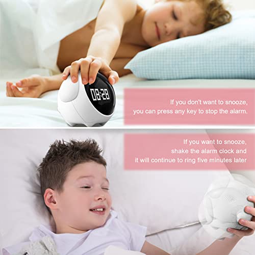 - 🎶【Dual Alarm & Snooze】 Dual alarm clock allows you to set 2 separate wake-up alarms at different times, and kids alarm clock has 5 optional chord ringtones and 4 adjustable volume levels for your needs. You can get 5 minutes snooze time by shaking the clock . Press any button to shut down the snooze function.