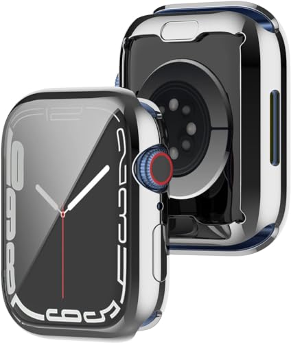 ELMO3EZZ - All-Around Anti-Scratch Bumper Protective,Soft TPU Case Compatible with Apple Watch Series 7 45mm,Stylish Screen Protection Flexible Film Cover,Premium Smartwatch Cases,Silver,45mm 2 Pcs