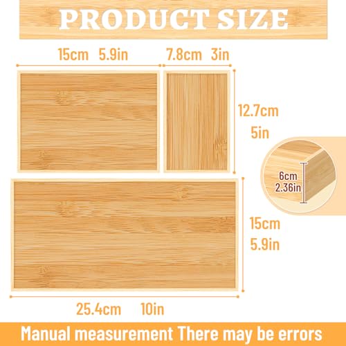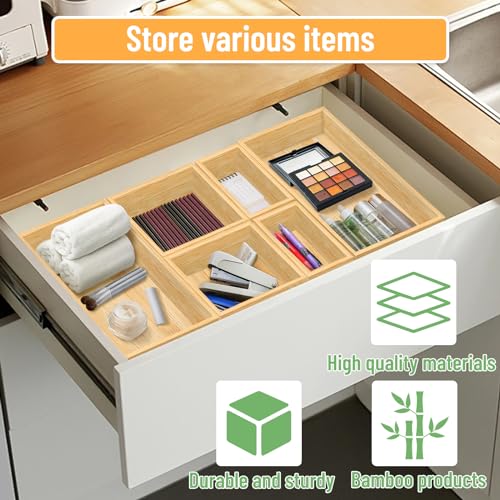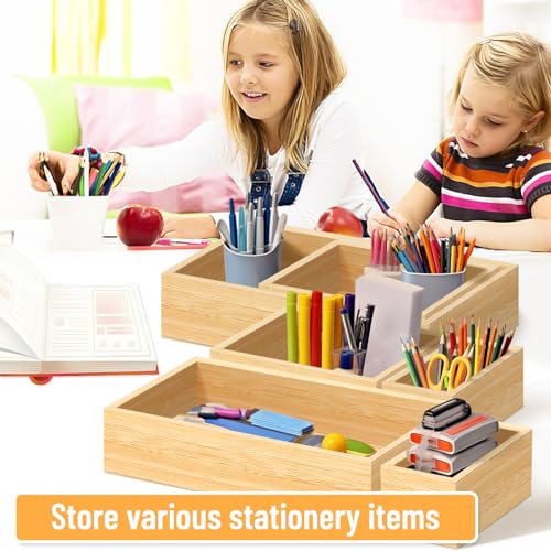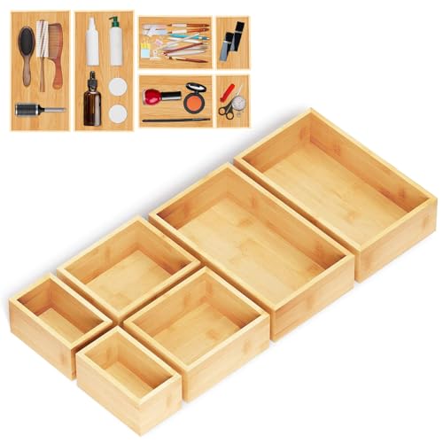 ALLILUYAA - مجموعة منظم أدراج من الخيزران مكونة من6 قطع،مجموعة صناديق تخزين متعددة الاستخدامات، منظم أدراج بأحجام متنوعة للمكتب والمنزل والمطبخ وغرفة النوم والحمام من اليلويا