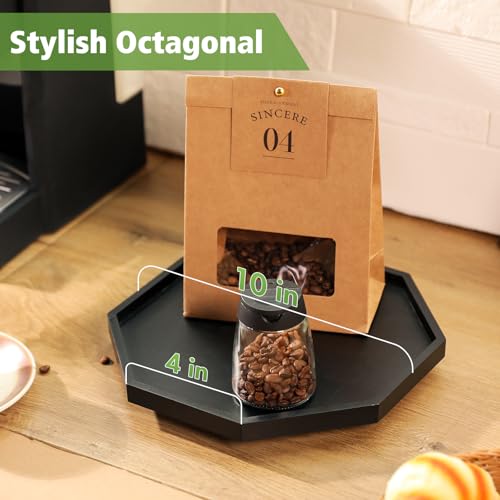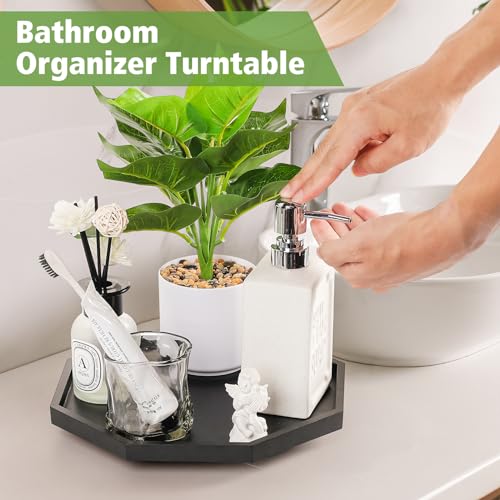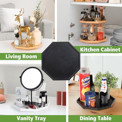Allinside - Allinside Octagonal Lazy Susan Turntable, 10" Bamboo Bathroom Organizer Tray with Raised Edges, Rotating Spice Rack for Kitchen Countertop, Cabinet, Pantry, Dining Table (Black)