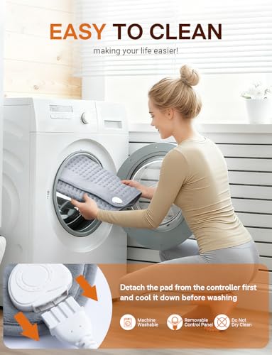 - 【EASY CARE & STORAGE】The well-finished heated pads is machine washable and dryer safe, making it easy to keep clean and use for years. Please detach the controller and cool it down before washing. Please dry the heating pad completely after washing it before turning on. Also, you can roll up the controller in heating pad and secure in place with elastic straps for easy storage and carry it everywhere