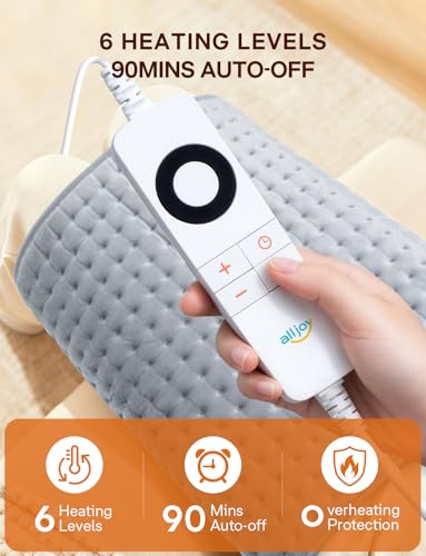 ALLJOY - ALLJOY Heat Pads for Back Pain Relief, 85x45cm Extra Large Heat Pad for Period Cramps Neck Shoulder and Back, Electric Heating Pad with 6 Heat Levels 90Mins Auto Off, Christmas Gfits for Women Men