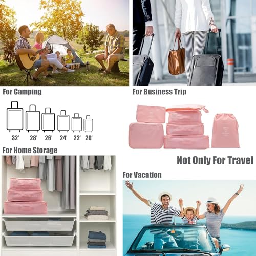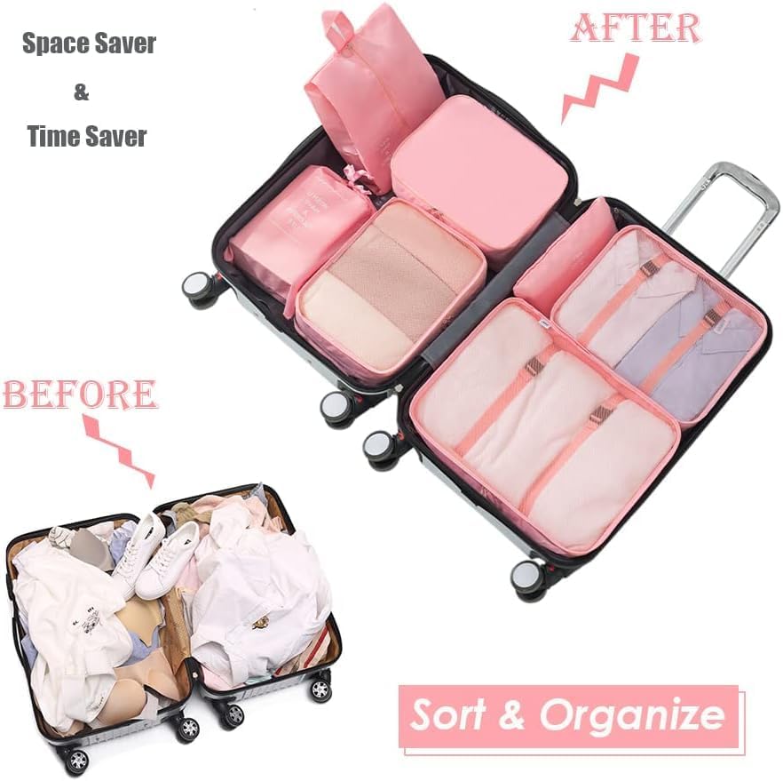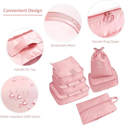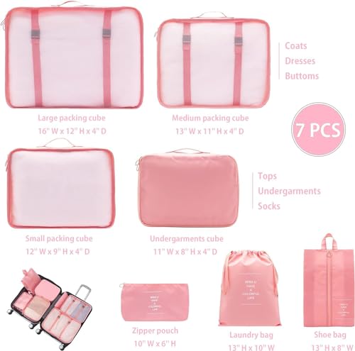ALLWIN HOUSEWARE W - ALLWIN HOUSEWARE W Fabric Travel Organizer 7 In 1 Travel Laundry Cosmetics Luggage Packing Organizers Set Makeup Bags Organizer Packing Cubes With Shoe Bag For Travel (Pink)