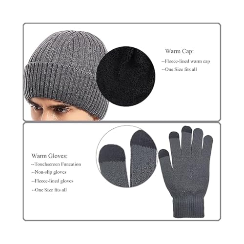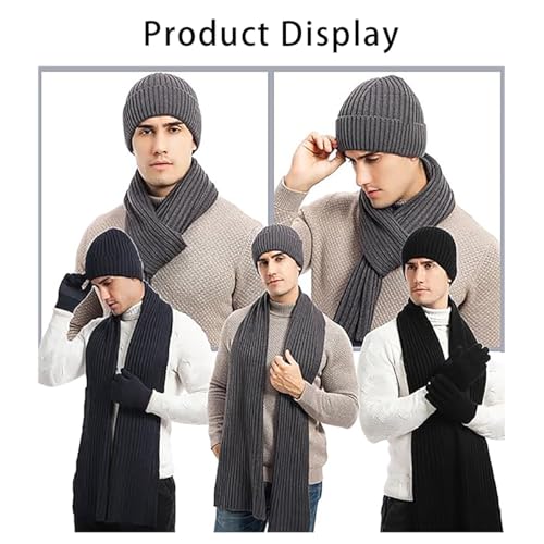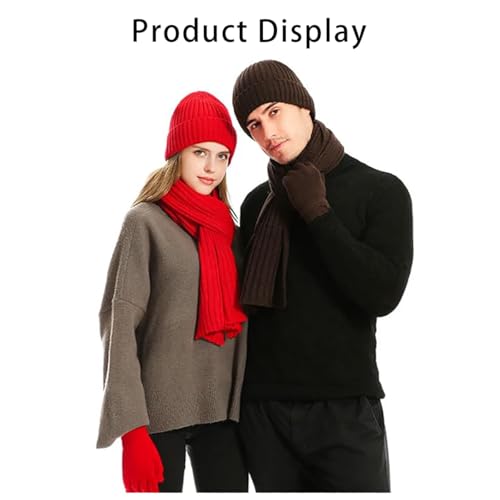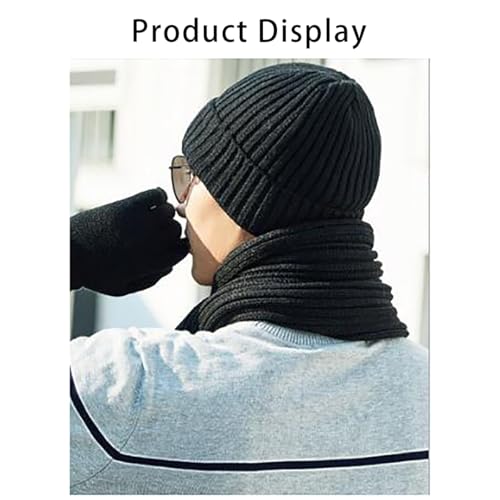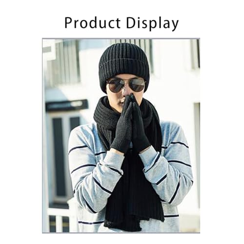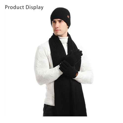 ALMEKAQUZ - ALMEKAQUZ 3Pcs Knitted Hat Set Scarf Hat and Gloves Three-Piece Set Knit Thermal Suit Padded Warm Suit for Winter Knitted Hat with Inner Fleece Non-Slip Gloves Black, One Size