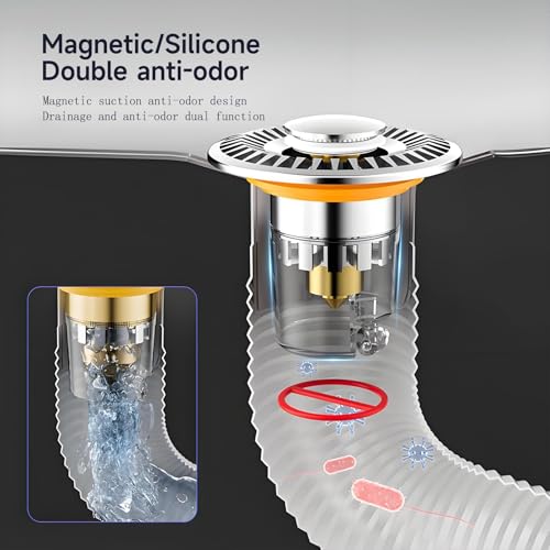 ALMEKAQUZ - ALMEKAQUZ Bathroom Sink Drain Strainer and Stopper, Magnetic Pop-Up, Anti-Odour, Stainless Steel Brass Core, Universal, 2 Pack