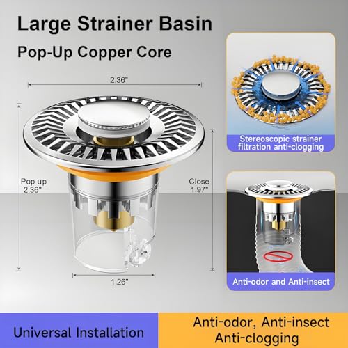 - Universal Compatibility: Designed to fit most standard bathroom sink drains, making installation straightforward without requiring professional assistance
