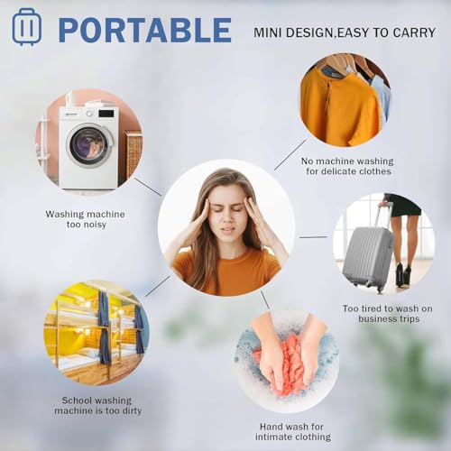- 💧【Portable Washing Machine】The Mini washing machine is made of environmentally friendly PP and TPR materials, The upgraded bottom suction cup enhances the suction force,which is safe, tasteless and durable, has a long service life.