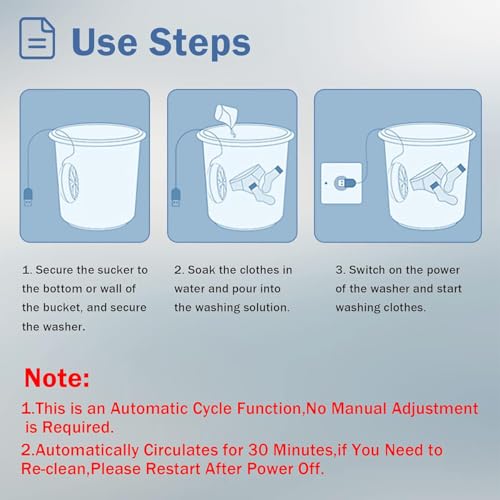 - 💧【Easy to Use】Just use the suction cup to fix the portable washing machine to the bottom or edge of the bucket or sink, put in small clothes and detergent and add water, then you can connect the power and start washing.