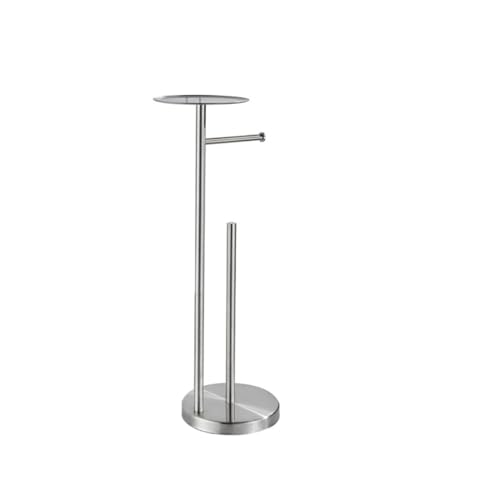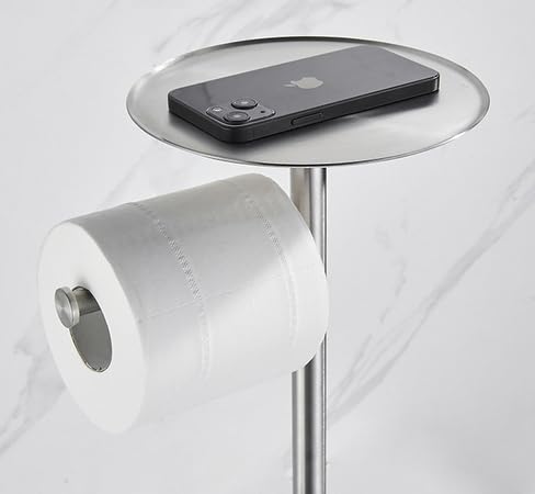 - 😄【Elegant Toilet Paper Holder Design】: This freestanding toilet paper holder looks elegant and classy with stainless steel brushed nickel finish, which perfectly match your bathroom décor. The sturdy base not only keeps this unit in place but also has a padded bottom to protect floors from scratches.