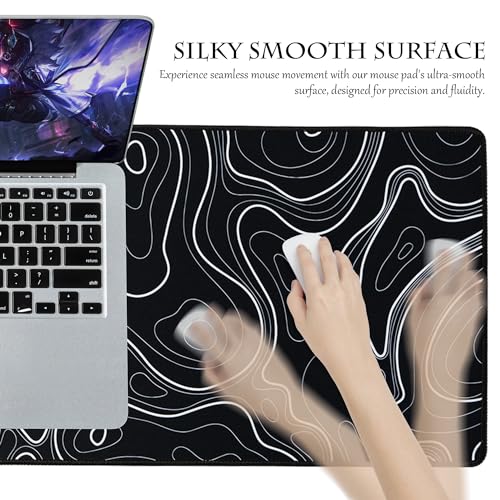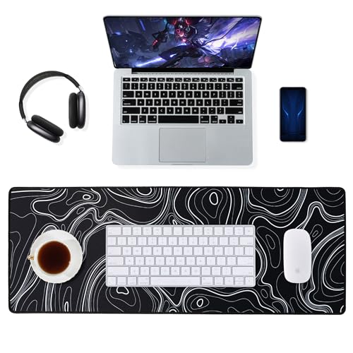 ALOANES - ALOANES Waterproof Mouse Pad with Durable Stitched Edge, XL Gaming Keyboard Pad, Non-Slip Rubber Base, Extended Desk pad for Gamer, Office & Home, Black Topographic Map Mousepad 31.5''x 11.8''x 0.12''