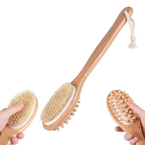 - 🛀【Double-sided design】: Stiff Natural bristle can massage the skin and deeply clean the cutin and dirt on the skin surface, which can effectively clean the skin.Soft bristles can protect sensitive skin,provide a variety of hardness options, thoroughly clean the whole body.