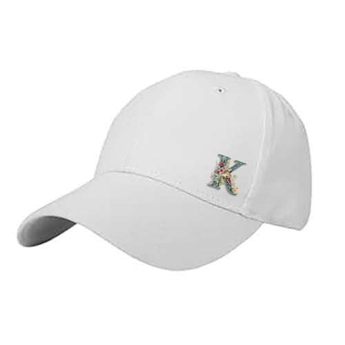 Generic - قبعة بيضاء بتصميم حروف ابجدية مطبوعة بحروف زخرفية (K)