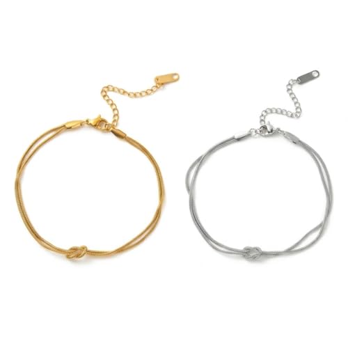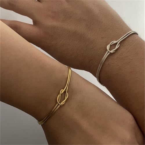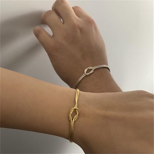 ALRNBY - Gold Silver Knot Bracelets for Women Love Matching Infinity Bracelets for Friendship Dainty Snake Hand Chain Adjustable Bracelets for Women Best Friend Stainless Steel Bracelet (Gold and Silver