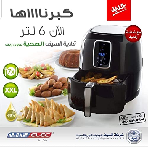 ALSAIF - مقلاة هوائية صحية بدون زيت 6 لتر - AL7202، أسود من السيف
