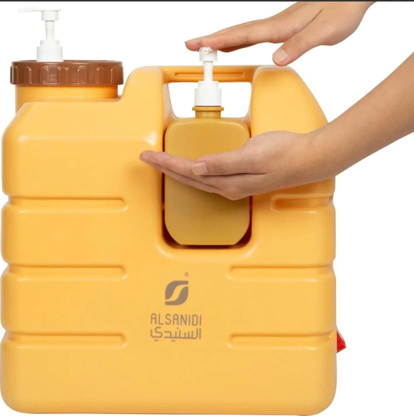 - CAPACITY: 25-litre water container with built-in dispenser tap and additional 500ml soap dispenser attachment for convenient handwashing