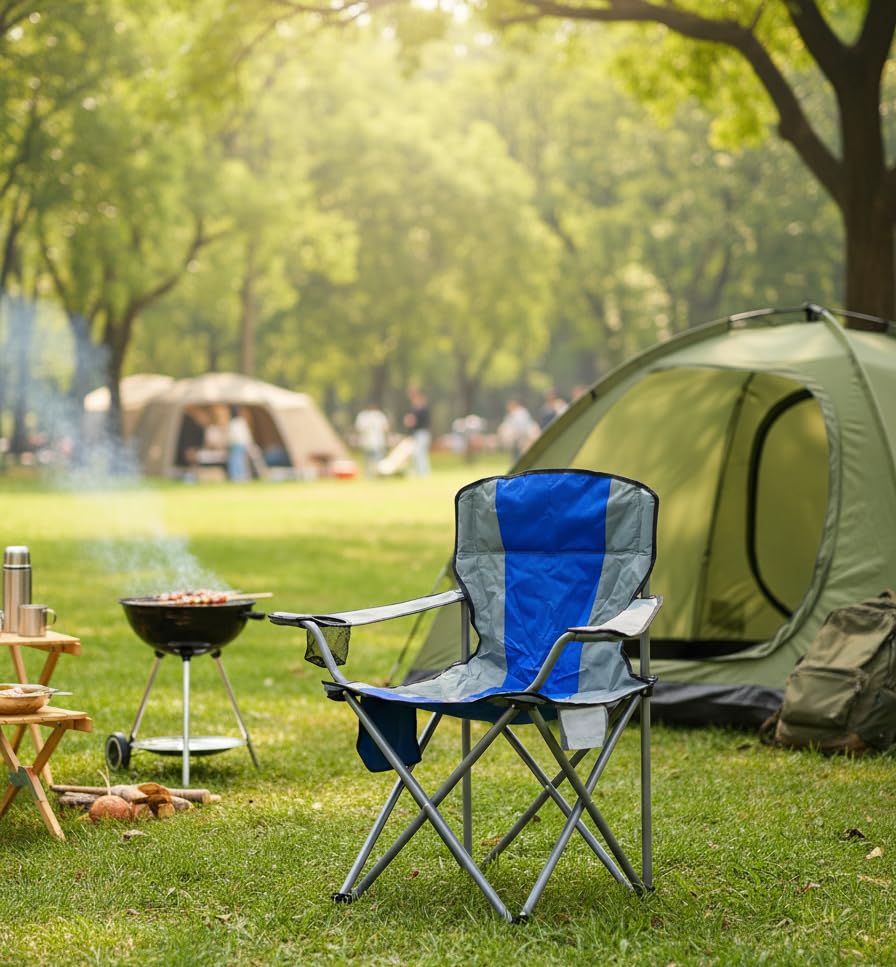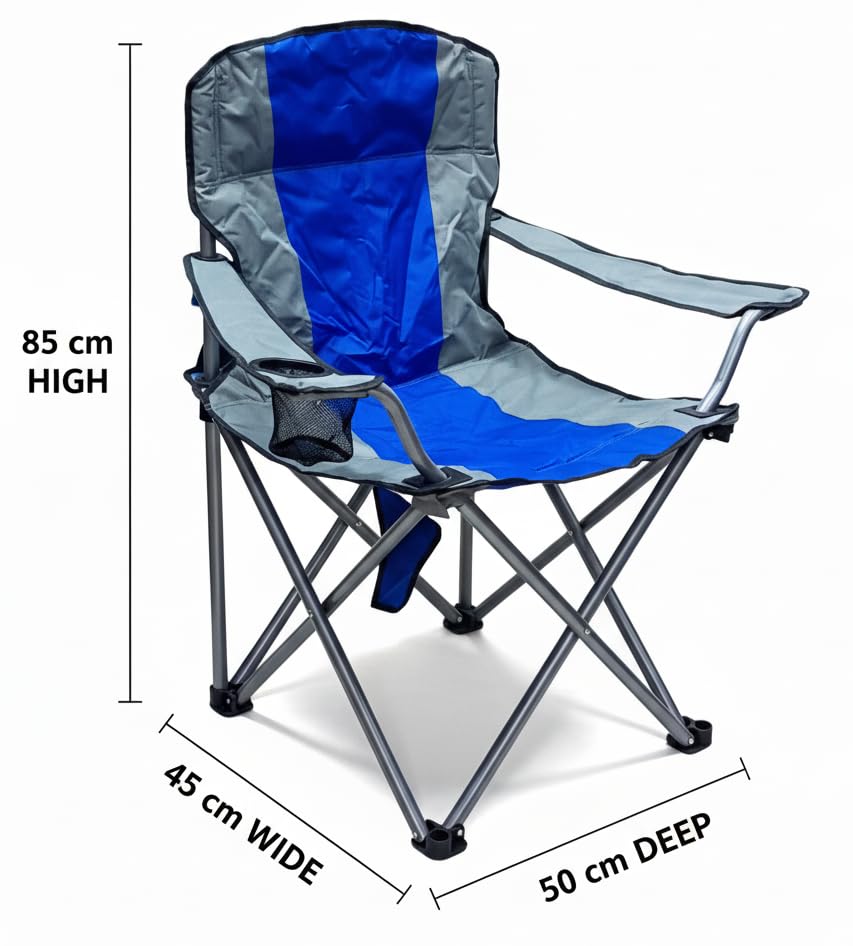 GO2CAMPS - Alsaqer Foldable Camping Chair Heavy duty/Picnic chair/Out Door Chair Hand Support with Cup Holder with Carry Bag(Blue)