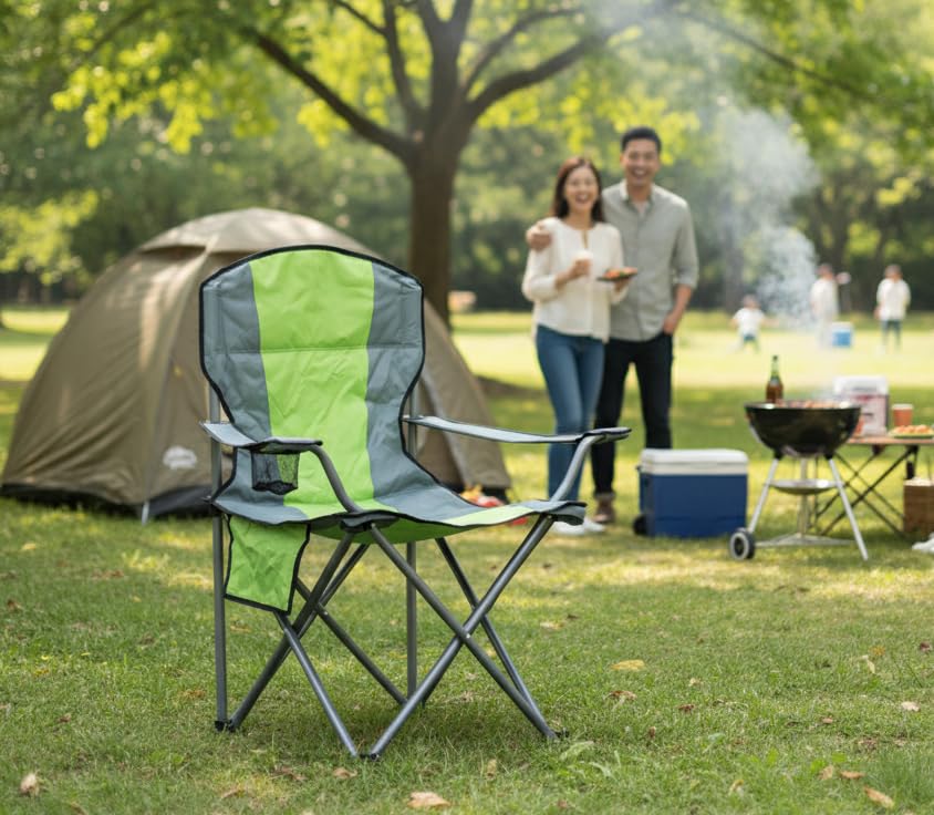 GO2CAMPS - Alsaqer Foldable Camping Chair Heavy duty/Picnic chair/Out Door Chair Hand Support with Cup Holder with Carry Bag(Green)