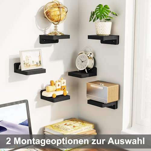 Alsonerbay - Alsonerbay Wall Shelf, Small Floating Shelf, Set of 6, 10 cm Mini Shelf, Wall Shelf, Hanging Shelves for Walls, Wall Shelf for Bedroom, Living Room, Bathroom, Kitchen (Black)