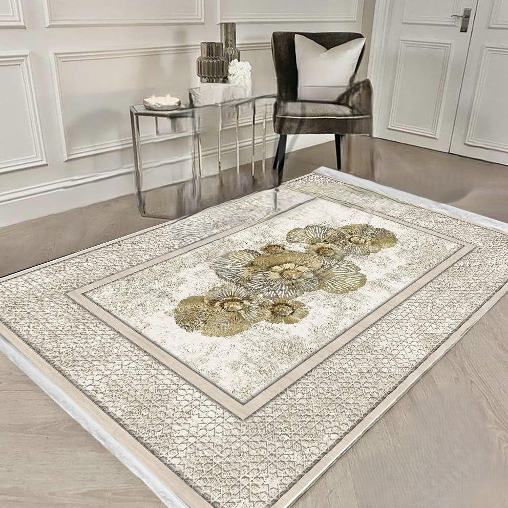 Generic - بديل سجاد الوجه ناعم وهر حبوب مضاد للانزلاق بألوان جذاب مودرن (بيج ورده دهبى ، مقاس كبير 200×300سم حوالي)