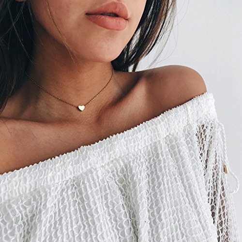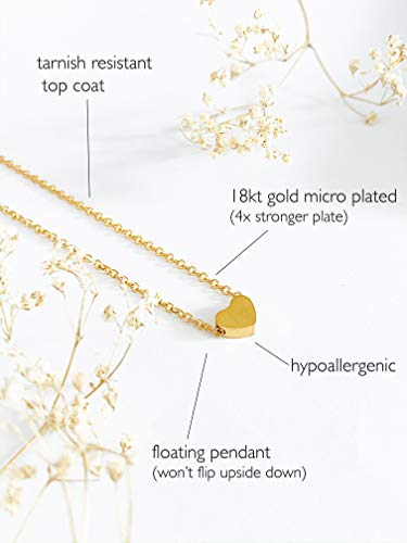Altitude Boutique - Altitude Boutique Heart Necklace for Women 18kt Gold Rose Gold or Silver PlateChoker or Long Necklace Friendship Dainty Womens Adjustable 15" 16" 17" 18", Gold Plated Stainless Steel
