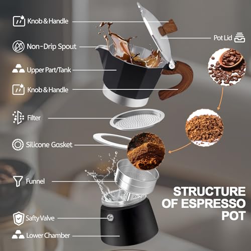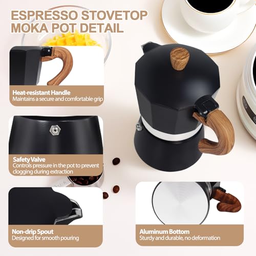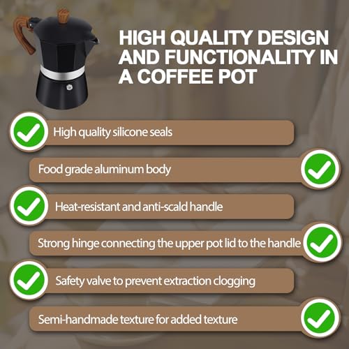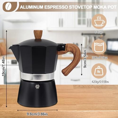 Mogrecha - ماكينة تحضير قهوة موكا سريعة من الالومنيوم بسعة 6 اكواب سعة 300 مل، ماكينة تحضير قهوة اسبريسو ملونة على الطراز الايطالي الكلاسيكي لتحضير القهوة اليونانية ومحبي الكافيتريا والتخييم والسفر والاستخدام