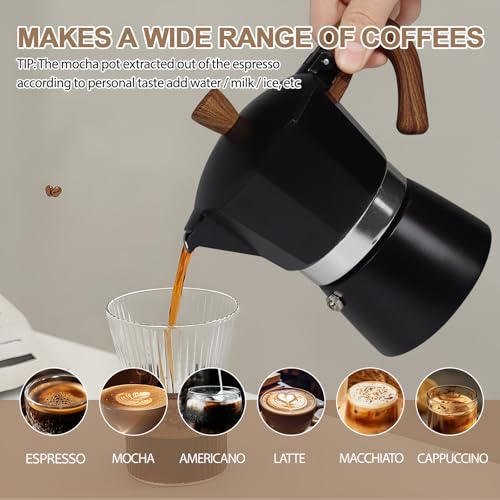 - ألوان ومقاسات متعددة: تأتي أواني الموكا الخاصة بنا بأحجام مختلفة وتوفر مجموعة واسعة من خيارات الألوان - من الألوان الكلاسيكية وظلال الماكرون إلى الألوان المتباينة النابضة بالحياة. استمتع بتجربة بصرية مبهجة مع تذوق قهوتك الغنية والعطرية. ملاحظة خاصة: عدد الأكواب الموضحة في صفحة المنتج هو مجرد إشارة إلى السعة القياسية في الصناعة، وقد تختلف الكمية الفعلية للقهوة المصنوعة قليلاً بسبب عدد من العوامل، وعادة ما تكون أقل قليلاً من الكمية المعروضة. لذلك، سيكون وعاء الموكا ذو السعة الكبيرة مثاليًا