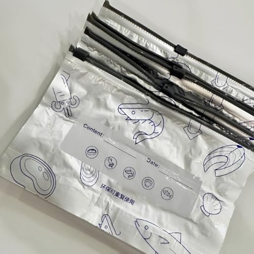 Generic - أكياس بسوستة من فويل الألومنيوم، شنط تخزين مضادة للتسريب وقابلة لإعادة الاستخدام ومزودة بقواعد قائمة للفواكه والخضروات واللحوم، مزودة بـ 10 ملصقات تعريف