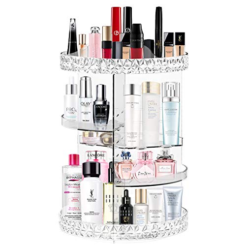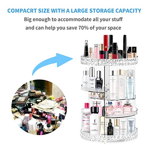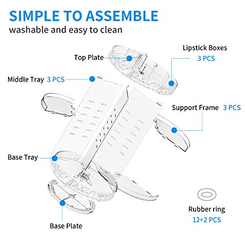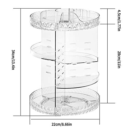 - سعة كبيرة جدًا- يبلغ حجم منظم مستحضرات التجميل هذا بارتفاع 13.4 بوصة، وقطر 8.66 بوصة (القاعدة) عند تجميعها. يحتوي الرف العلوي على جيوب متعددة للحفاظ على طلاء الأظافر وأحمر الشفاه، الرف الاوسط لتنظيم وتخزين عطرك والعناية بالبشرة ومستحضرات التجميل وما إلى ذلك.